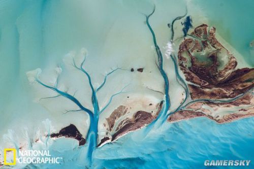 荷兰附近瓦登海( Wadden Sea)的海岸上,一条条冲沟穿过沙滩,好似一条条海蛇。