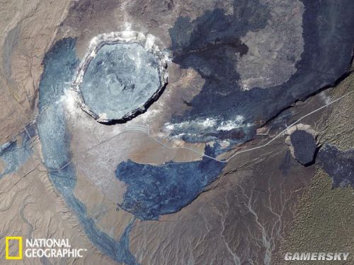 休梅克陨石坑( Shoemaker)是澳大利亚境内已知最古老的陨石坑,大约形成于17亿年前。图中色彩鲜艳的斑点是季节性的咸水湖泊。