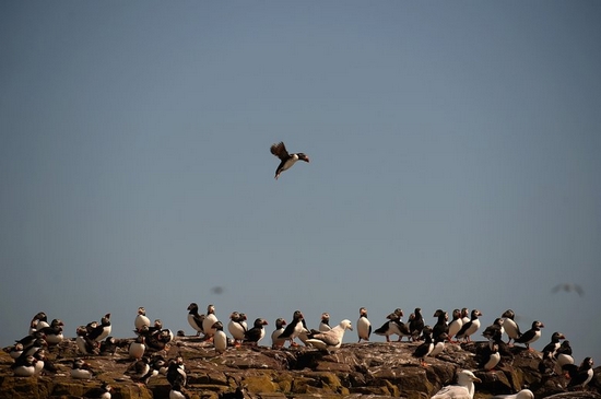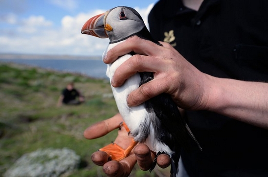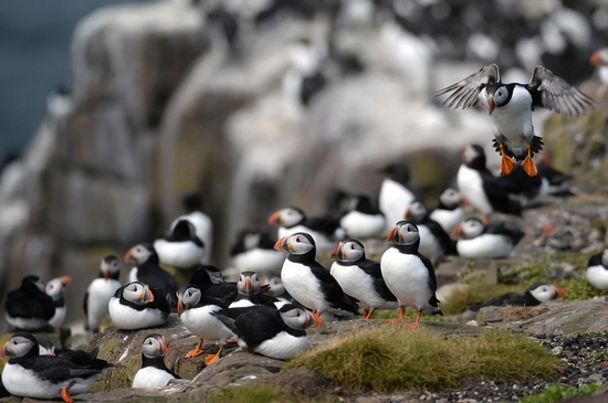 每五年,国家信托流浪者在英格兰东北部海岸的法尔恩群岛进行海雀普查。这里是这些美丽的鸟儿繁殖的岛屿,它提供了良好的食物来源,而且很少有食肉动物出现,还有良好的保护有利于它们筑巢。此项统计的意义在于2008最后一次的调查记录这里共有36500对,对比2003普查时的数量下降了三分之一。有些人担心是过去一年的极端天气所致。今年3月,鸟冲死的主因是强大的寒风实在太多了。而去年夏天,许多鸟类被洪水淹没了家园。统计者现在面临统计每一个洞穴筑巢的鸟儿数量的艰巨的任务,它涉及到要检测每个地下巢穴是否被占用。结果预计于七月公布。(摄影师 -Leanne Burden Seidel )