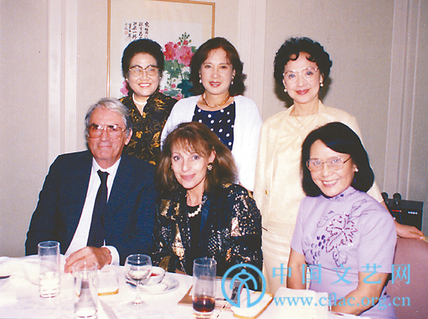 1987年,美国影星格里高利·派克偕夫人访问上海时与白杨、张瑞芳、秦怡(后排中)、王丹凤会面