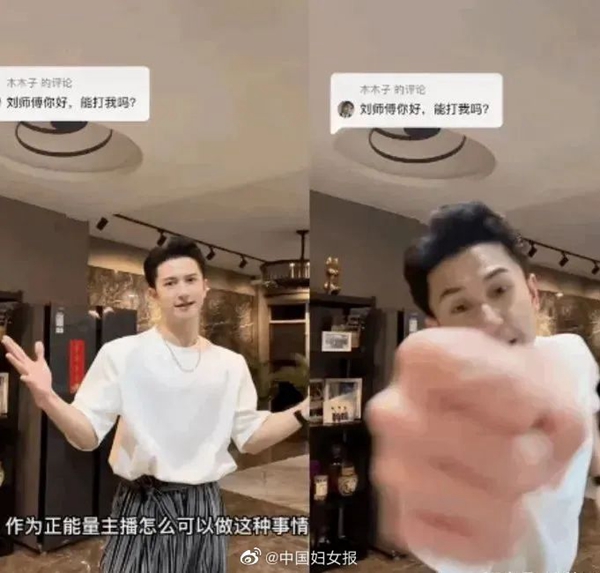 左右晃晃脑袋,露出凶狠的表情,对着镜头快速出拳、肘击、抬脚踹……前不久,艺人刘洲成在短视频平台上露脸并发布了这样一段视频。评论中,有网友留言称是“前妻视角”“被家暴视角”,对此,刘洲成回复了一个“带血的斧头”符号。据悉,刘洲成曾被前妻控诉家暴。该短视频发出后不久,刘洲成短视频账号被平台封禁,目前仍处于禁言状态。