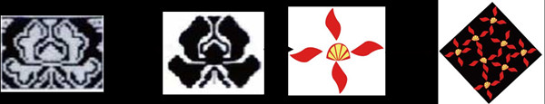 化繁为简即通过归纳和概括简化原型内容,保留图案的主体形态和典型特征,摈弃繁复的造型,使图案在继承原型又追求形态变化中趋于生动简练。如图7所示,对八瓣花纹样简化处理,从复杂的纹样中提炼简单的八瓣花形态,新图案简约大气,保有一定的民族神韵。