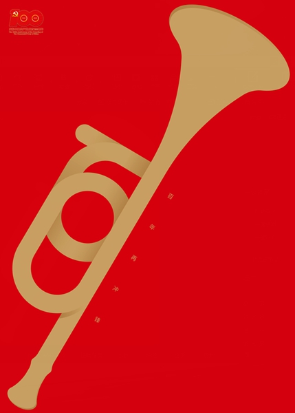 以“冲锋号”为元素的视觉符号进行创作,彰显着设计工作者勇于回答时代课题,打造具有世界影响力、号召力的超级文化符号,传达新时代党的声音的努力和决心。在新征程上勇于担当、冲锋在前,以新时代奋斗者的姿态将伟大建党精神响彻祖国的千山万水,传向全世界。