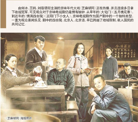 由何冰、王鸥、刘蓓领衔主演的京味年代大戏《芝麻胡同》正在热播,并且连续多日拿下收视冠军,可见观众对于京味电视剧仍是情有独钟。从早年的《大宅门》《五月槐花香》,到近年的《情满四合院》《正阳门下小女人》,京味电视剧作为国产剧中的一个独特类型,一直为观众喜闻乐见。剧中的四合院、北京人、北京话,早已跨越了地域限制,嵌入国民的共同记忆。