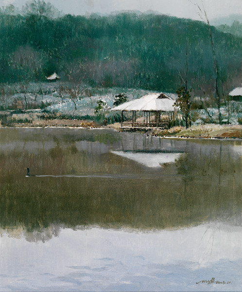 小雪丶亭子丶水鸟 50×60cm 2008年