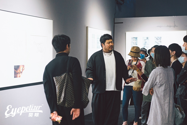 开幕式结束后,本次展览的策展人和视觉及空间设计师为到场观众进行了导览,详细讲述了每个展厅的策划思路以及作品细节。