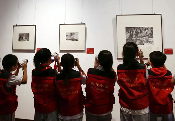 沭阳县东兴小学印咸摄影小记者们现场观展并拍摄