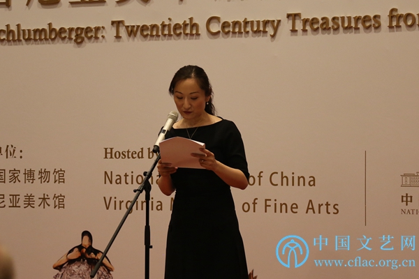 5月30日,“云鬓珠翠——弗吉尼亚美术馆藏二十世纪珍宝艺术展”在中国国家博物馆开幕。图为中国国家博物馆国际联络部副主任潘晴出席活动并致辞。中国文艺网 张钰童 摄