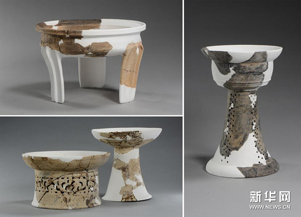 湖南华容七星墩遗址出土的肖家屋脊文化陶器(拼版照片)。新华社发(国家文物局供图)