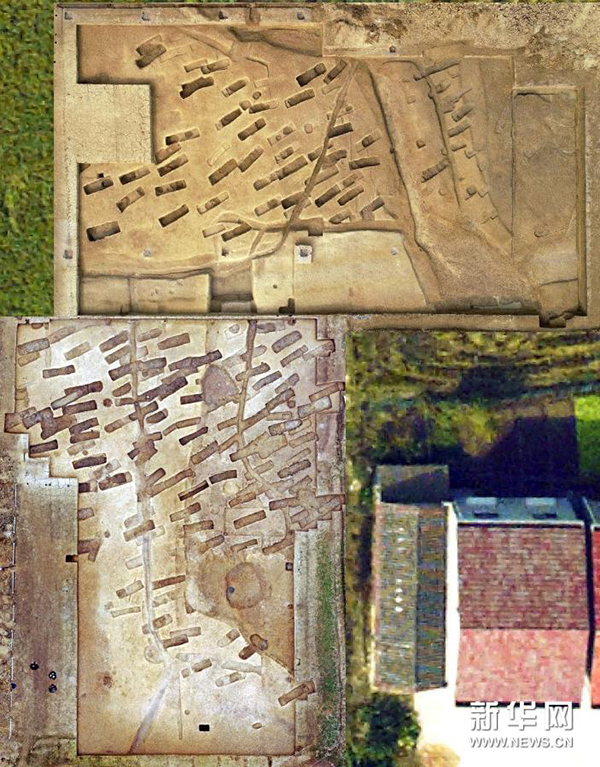 湖南澧县孙家岗遗址墓地南区(部分)墓葬分布。新华社发(国家文物局供图)