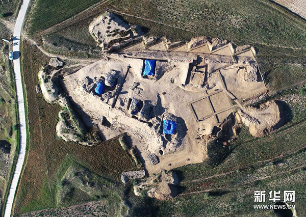 内蒙古后城咀龙山时代石城发掘区航拍图。新华社发(国家文物局供图)