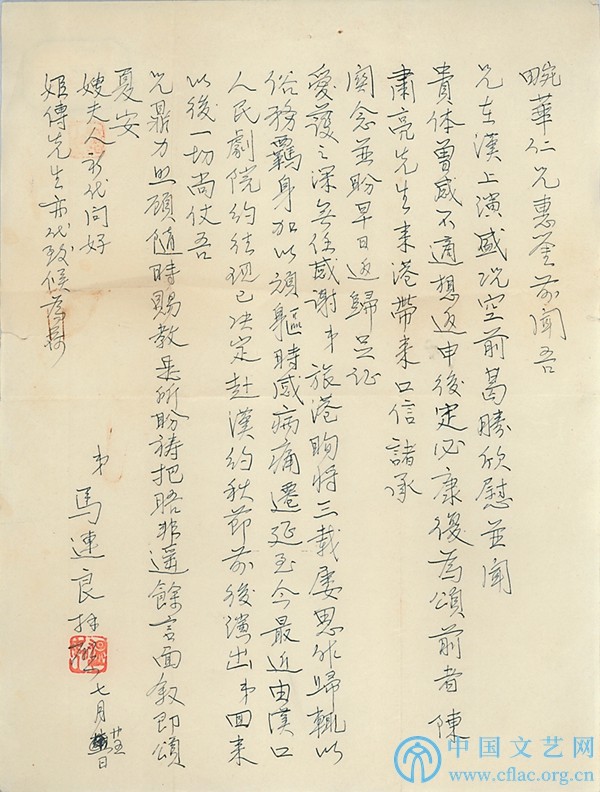 马连良致梅兰芳信函 梅兰芳纪念馆藏