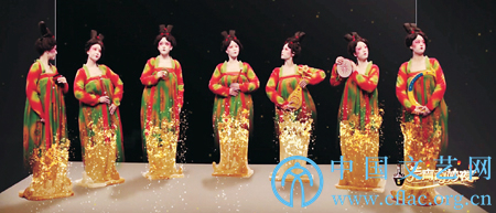 一群头梳高髻、面化“斜红”、身着华服的“唐宫小姐姐”,手持乐器翩翩起舞,她们体态“丰腴”,却又不失灵活,宛如从古风古韵的仕女图中走下,又仿佛从金碧辉煌的大唐宫殿走来,穿过由莲鹤方壶、贾湖骨笛、 《簪花仕女图》 《捣练图》等文物作为背景的舞台,又“溜”进洛阳应天门、清明上河园等名胜古迹,不仅让观众惊呼:这是什么神仙节目?再来亿遍!更让文物“活”了过来,蹿红“出圈”。