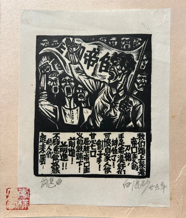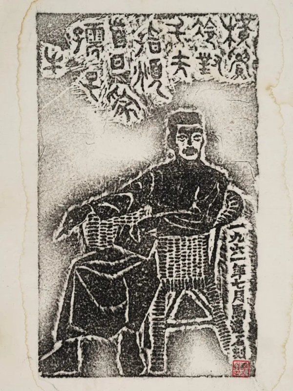 展览以马达的纸本石版画《鲁迅》和李桦旧藏麦绥莱勒版画开篇,回望20世纪30年代那个内忧外患的时代中,一批青年版画先驱和他们与革命洪流、人民生活息息相关的创作:《鲁迅》表现鲁迅先生坐在藤椅上的形象,如同在留心听人谈话,亦如同他写作过程中的一个停顿,这件作品,可以视作对新兴木刻运动的“复述”,右下方的字迹则借鉴北魏龙门石窟造像记笔法,堪称精彩。展览中以李桦为代表的版画家创作的革命现实主义题材作品多怒涛奔涌,反映战时国统区社会的动乱与人民的苦难;而以力群、古元为代表的延安版画创作群体之作,则更加直观地呈现了解放区人民的生活与生产建设。他们的创作,堪称“战时民众生活的时代画卷”。