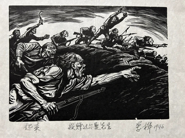 怒潮组画·起来(纸本木刻 1946年)李桦