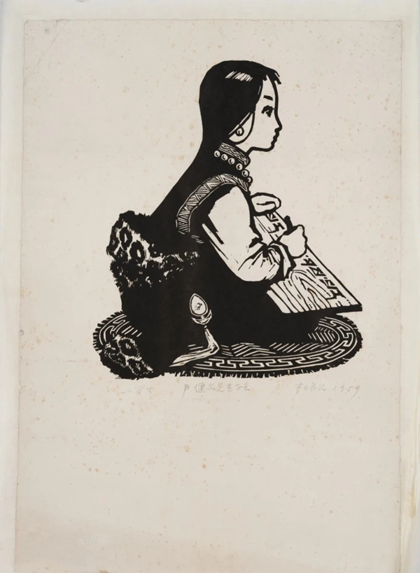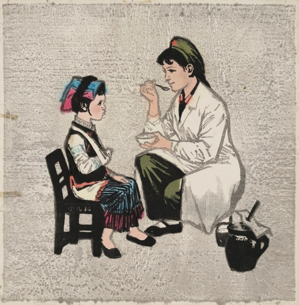 儿科医生(纸本木刻水印套色手拓 1958年)吴凡