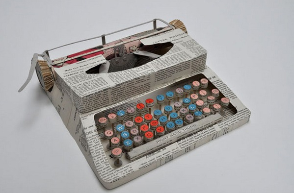 来自英国的珍妮弗 科利尔(Jennifer Collier),她用废弃的报纸,杂志,地图什么的,手工制作了一个个复古的器材,有些细微的地方还用针线完美的结合,让人感觉到虽然材料是废品,但丝毫都没降低它的艺术品质。