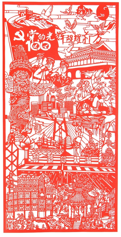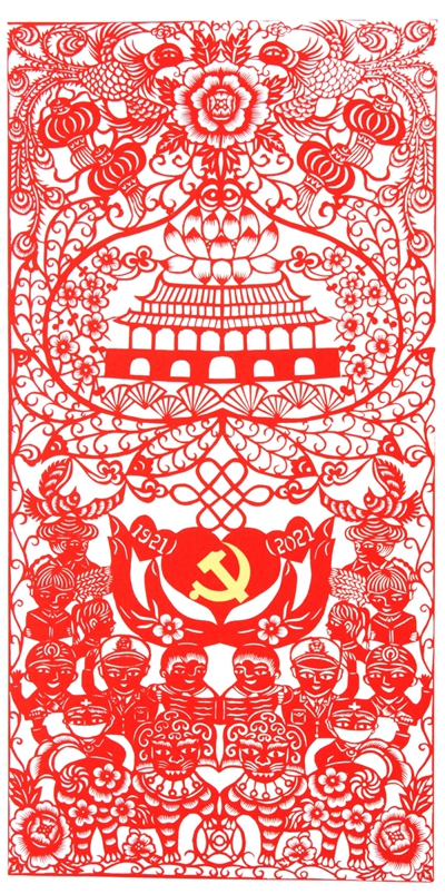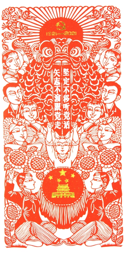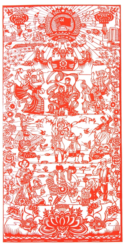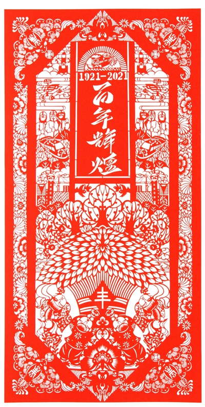 时空斗转,星汉璀璨。红日光耀华夏,皓月普照陇原。一百年伴着光荣与梦想,逆流中改天换地,风浪上扬帆远航,华夏愈加绚烂辉煌,国家迈向繁荣富强。在伟大的中国共产党百年华诞之际,甘肃省广大剪纸艺术家将内心奔涌的激越和豪迈倾注于剪刀和纸上,用精美的剪纸作品为中国共产党庆生献礼。“奋斗百年路 启航新征程”——庆祝中国共产党成立100周年甘肃省剪纸展览,是甘肃省广大民间文艺工作者坚持以习近平新时代中国特色社会主义思想为指导,全面贯彻党的十九大和十九届二中、三中、四中、五中全会精神,贯彻落实习近平总书记关于文艺工作系列重要讲话和视察甘肃重要讲话指示精神,积极开展党史学习教育的一次重要实践,也是甘肃剪纸艺术家对优秀传统文化“创造性转化,创新性发展”的一次积极响应。