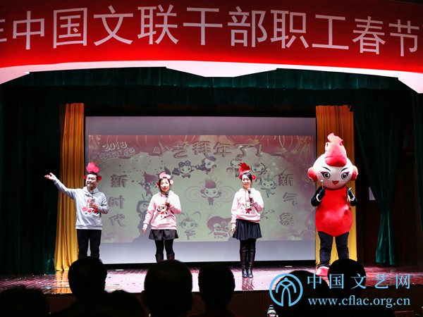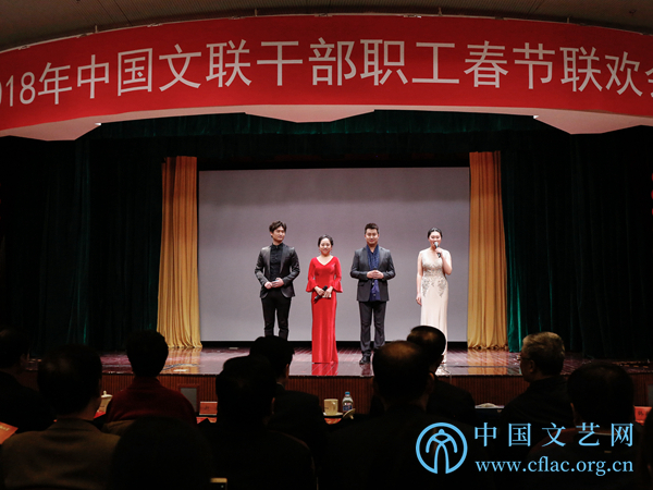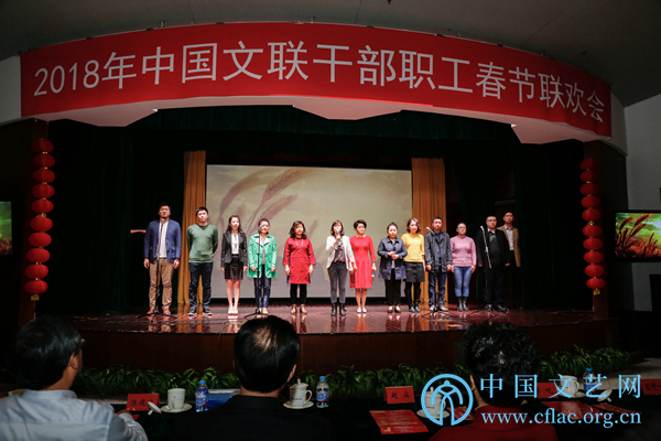 2月8日,正逢农历小年,中国文艺家之家四层礼堂掌声阵阵、笑声不断,中国文联2018职工春节联欢会在这里举办。中国文联党组书记、副主席李屹,中国文联党组成员、副主席赵实,中国文联党组成员、副主席左中一、李前光、郭运德,中国文联党组成员、书记处书记陈建文与各全国性文艺家协会、中国文联机关各部室、各直属单位职工代表欢聚一堂,喜迎新春。