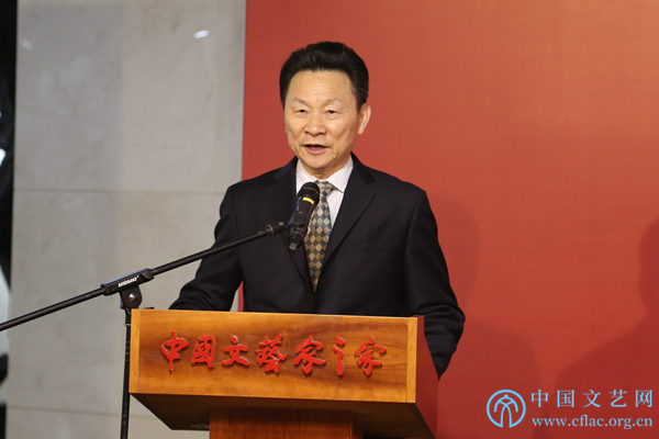11月14日,由中国文学艺术界联合会、中国美术家协会、中共湖北省委宣传部指导,湖北省文学艺术界联合会主办,湖北省美术家协会、湖北省国画院承办的“写意长江——湖北省中国画作品展”在中国文联文艺家之家展览馆开幕。图为湖北省文联党组书记,常务副主席邓长青致辞。中国文艺网 刘青摄
