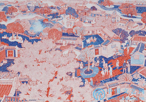 插画作品《岁月静好》是由红色和蓝色两种耐水性签字笔画成的,以独具文化特色的潮州小城为背景,描绘了在静好岁月里人们休闲自得、乐观向上的精神风貌。极富装饰情趣的红蓝两色互相交融、相衬相托,点线在画中自由游走,形成唯美独特的绘画风格。这是我在记忆与理想中编织的唯美现实场景,希望让观者对美好岁月充满憧憬和热爱。