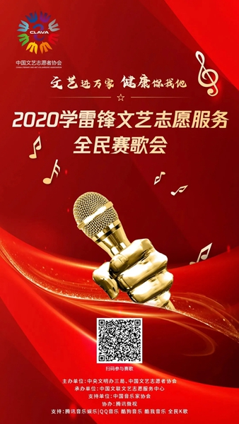 中央文明办三局、中国文艺志愿者协会与腾讯微视、全民K歌等网络平台共同推出“2020学雷锋文艺志愿服务全民赛歌会”。