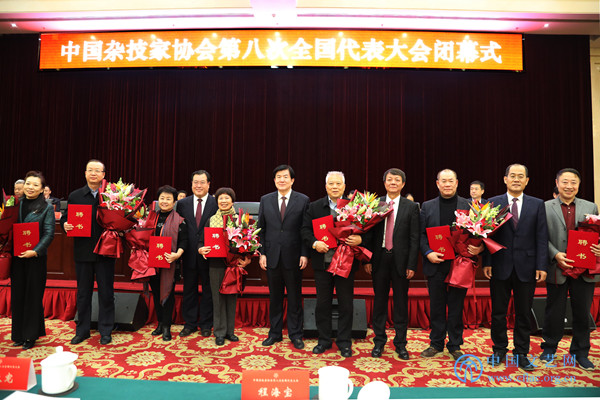 中国文联党组书记、副主席李屹,中国文联党组成员张雁彬等出席闭幕式。李屹和新当选的中国杂技家协会主席边发吉向聘请的中国杂协顾问颁发荣誉证书和聘书。边发吉致闭幕词。中国杂协分党组书记、第八届驻会副主席唐延海主持闭幕式。
