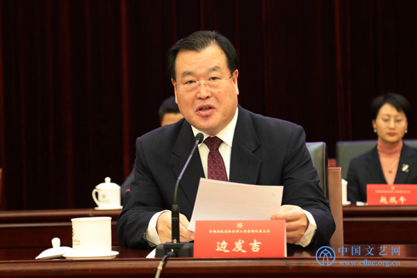 12月15日,中国杂协第八次全国代表大会在京闭幕。图为中国杂协第八届主席边发吉致闭幕词。 中国文艺网 单鸣 摄