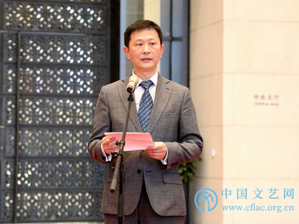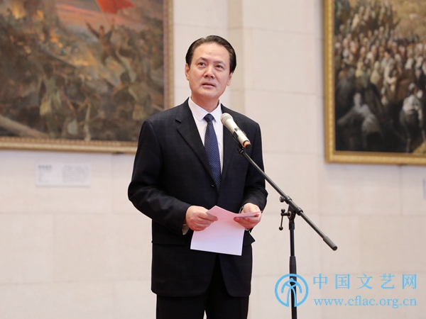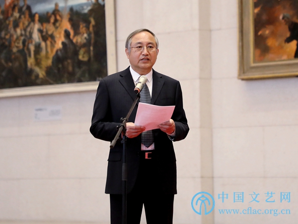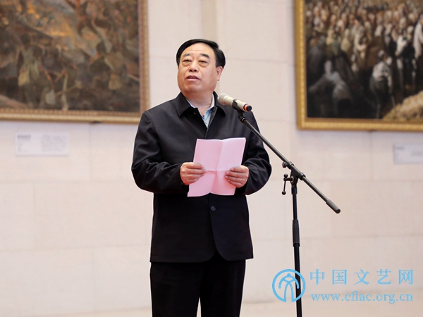 4月9日,“希望的田野——脱贫攻坚 共享小康全国摄影展”开幕式在京举行。图为中国文联党组成员、副主席李前光在开幕式上讲话。
