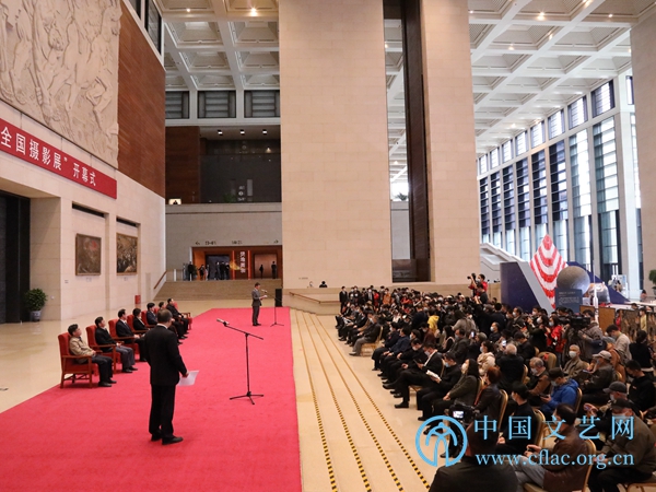 4月9日,“希望的田野——脱贫攻坚 共享小康全国摄影展”开幕式在京举行。图为中国摄协主席李舸在开幕式上致辞。