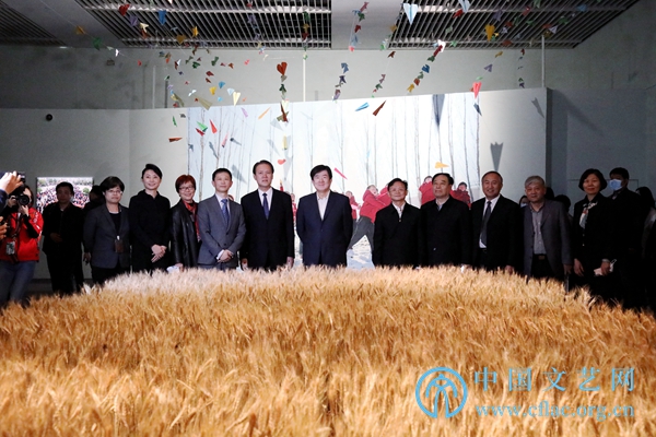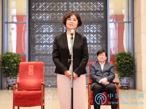 4月9日,“希望的田野——脱贫攻坚 共享小康全国摄影展”开幕式在京举行。图为中国文联主席、中国作协主席铁凝宣布展览开幕。