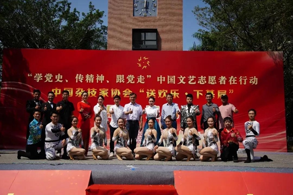 中国杂协主办“学党史 传精神 跟党走”中国文艺志愿者在行动暨中国杂技家协会“送欢乐 下基层”慰问。中国杂协文艺志愿者将以本次慰问演出活动为契机,不断深入学习百年党史,不断铸牢信仰之魂、夯实思想之基,以更大的工作热情、更强的责任担当,向党的百年华诞献礼,为中国杂技事业的繁荣发展贡献力量。