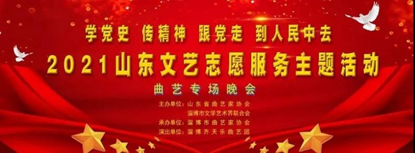 山东省文联微信公众号报道:山东省曲协参与主办“学党史 感党恩 跟党走”——到人民中去·2021山东文艺志愿服务主题活动曲艺专场晚会。节目有山东快书《今天我休息》、评书《肖飞买药》、相声《朋友 干杯》、相声《夸住宅》、相声《学评书》等,精彩的曲艺节目受到现场观众热烈欢迎。
