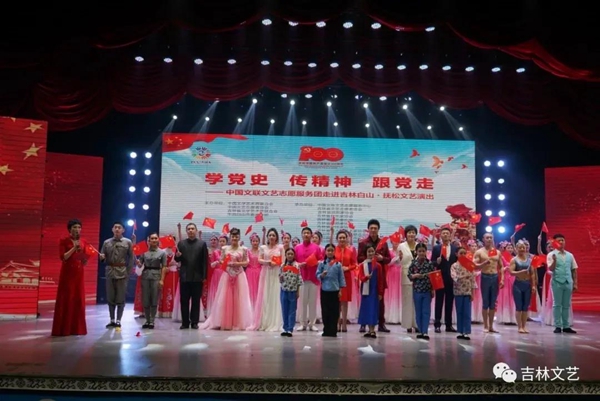 吉林省文联参与主办“学党史 传精神 跟党走”中国文联文艺志愿服务团走进吉林白山·抚松文艺演出。文艺演出融合了吉林省、市、县文艺精品节目,唱响了人们感党恩、跟党走的心声,为抚松县群众献上了一台精彩的节目。