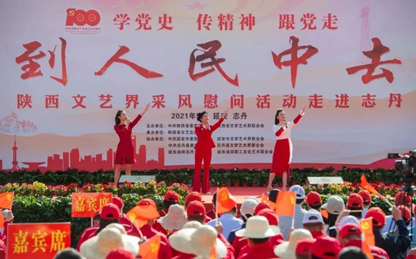 陕西省文联参与举办“学党史 传精神 跟党走”——“到人民中去”陕西文艺界采风慰问活动。活动历时四天,先后走进延安市宝塔区、志丹县、洛川县,铜川市照金镇等地,开展慰问演出、采风学习、向先进模范赠送书画作品、现场座谈会等活动,把文艺志愿服务送文化、种文化、传精神的实践和中国共产党历史一脉相承的精神追求紧密结合,引导文艺工作者重温党的历史,传承延安精神,深入社会生活,回馈人民群众。