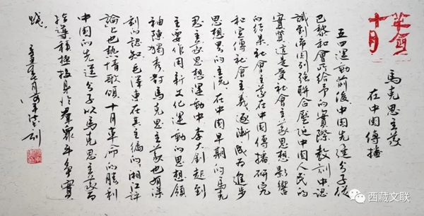 西藏文联开设“书写党史·铭刻初心——跟着书法、篆刻作品学党史”栏目,旨在艺术呈现中国共产党带领中国人民不懈奋斗的光辉历程,帮助全区文艺家和文艺工作者学史明理、学史增信、学史崇德、学史力行。