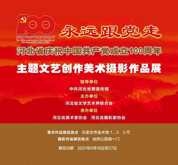 为深入学习贯彻习近平总书记在党史学习教育动员大会上的重要讲话精神,传承红色基因,弘扬优良传统,引导激励广大文艺工作者牢记初心使命,创作推出一批优秀文艺作品,生动宣传党的丰功伟绩,艺术展现河北丰厚的红色资源以及新时代全面建设经济强省、美丽河北的亮点成效,营造“党的盛典、人民的节日”浓厚氛围,河北省委宣传部、河北省文联在全省组织开展了“永远跟党走”河北省庆祝中国共产党成立100周年主题文艺创作,组织广大文艺工作者用手中的笔、镜头记录燕赵大地的百年巨变、描绘新时代发展的美丽画卷。