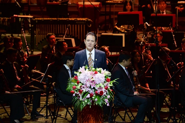 10月16日晚,第十三届中国音乐金钟奖在四川成都开幕。图为成都市委副书记、市长王凤朝致辞。