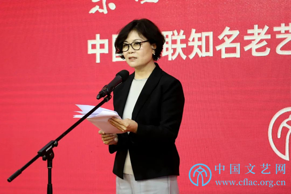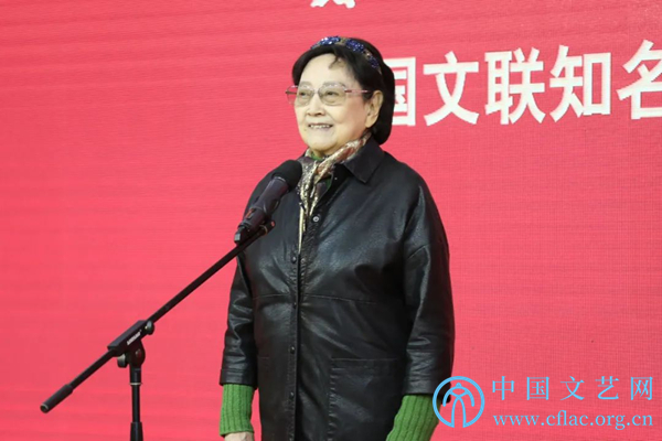 3月25日,“崇德尚艺、潜心耕耘——中国文联知名老艺术家艺术成就展”在中国文艺家之家展览馆开幕。图为中国文联主席、中国作协主席铁凝宣布展览开幕并讲话。