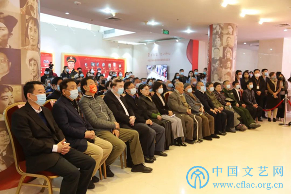 中国文联主席、中国作协主席铁凝,中国文联党组成员、副主席徐永军、董耀鹏、俞峰、诸迪,中国文联党组成员、书记处书记张雁彬、张宏,中国文联书记处书记(挂职)黄豆豆,三位参展艺术家裴艳玲、王晓棠、罗扬,中国剧协主席濮存昕、中国曲协名誉主席刘兰芳、中国曲协主席姜昆、中国人民解放军八一电影制片厂厂长刘绍勇、总装备部文艺创作室原主任王宸,以及各全国文艺家协会,中国文联机关各部室、各直属单位等有关方面负责人出席开幕式。