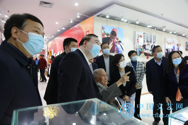 3月25日,“崇德尚艺、潜心耕耘——中国文联知名老艺术家艺术成就展”在中国文艺家之家展览馆开幕。图为领导嘉宾参观展览。