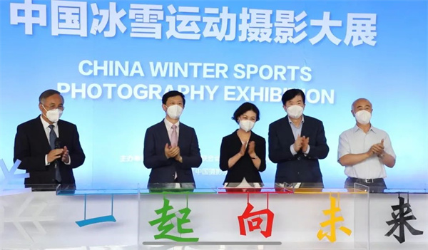 中国文联主席、中国作协主席铁凝,中国文联党组书记、副主席李屹,中国文联副主席、中国摄协主席李舸,中国摄协分党组书记、驻会副主席郑更生,中国摄协北京冬奥摄影小分队队员代表兰红光,共同为“一起向未来”中国冰雪运动摄影大展启幕。