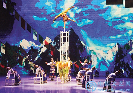 青春意味着梦想,也意味着脚踏实地地从当下丰富新鲜的生活中获取不竭的创作源泉,如人屏互动魔术《冰雪时光》创造性地将冬奥会冰雪项目融入魔术中,身着滑雪服的演员舞台上凌空横起“滑雪”,达到了不可思议的平衡效果,展现出生命的蓬勃;杂技《天路——高椅》中,不断加高的椅子直冲天际,演员饰演的藏族小伙在椅子顶部做出单手劈砖、转圈等高难度动作,徐徐“登天”,紧张刺激;滑稽《岁月》中三个好朋友由打打闹闹到相互扶持,表达了童年、青年、老年不同人生阶段友情的不同涵义,充满温馨与温情。