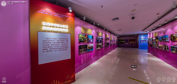 “‘秉天下情怀 展中华风范’——中国文联对外和对港澳台文化交流成果展”360°全景展厅场景