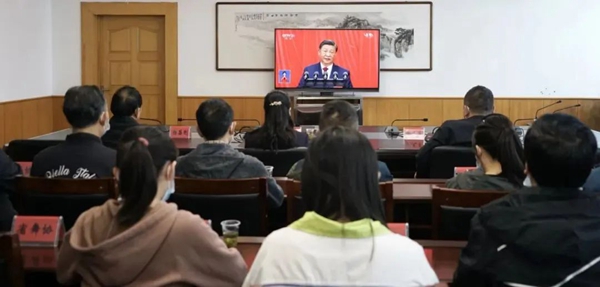 云南省文联组织全体干部职工集中收看党的二十大开幕会直播盛况,认真聆听习近平总书记代表第十九届中央委员会向大会作的报告。大家纷纷表示,要坚持自信自强、守正创新,踔厉奋发、勇毅前行;要围绕举旗帜、聚民心、育新人、兴文化、展形象建设社会主义文化强国,多创作体现云南特色、云南风格、云南气派的优秀作品,以良好的精神状态、优异的工作成绩和优秀的文艺成果,努力开创新时代云南文艺新局面,为圆满完成好党的二十大确定的各项目标任务交上满意答卷。