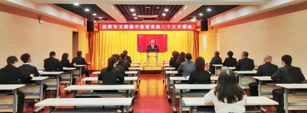 辽宁省文联组织全体党员干部收听收看党的二十大开幕会,学习习近平总书记代表第十九届中央委员会向大会作的报告。辽宁省文联机关的党员干部通过现场交流、支部微信群研讨,分别从推进文化自信自强、坚决维护国家安全、深入推进新时代党的建设新的伟大工程等方面谈体会、谈心得、谈思路、谈举措,纷纷表示要认真学习领会习近平总书记重要讲话精神,切实把思想和行动统一到习近平总书记重要讲话精神上来。