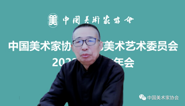 会议中,各位艺委会专家委员在线上互致问候并作认真发言。副主任王建中发言说,习近平总书记曾提出,要把科技论文写在祖国的大地上,所以我们的艺术设计教育的变革当随时代,提升学生思维应变能力。另外,要重视发挥好美术在服务经济社会发展中重要作用。他通过介绍清华大学探索“书院”教学模式,提出未来工艺美术设计跨学科培养的重要性,工艺美术在内的设计教学既要有引领社会需求的前瞻性理论研究,更要有服务社会需求的高质量成果供给。