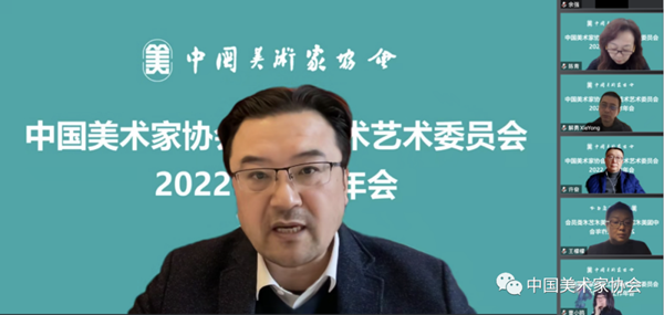 2022年12月17日,中国美术家协会工艺美术艺术委员会线上召开2022年工作年会。会议主题为“中国形象的时代感建构与时代性表达:学习贯彻党的二十大精神,加强新时代工艺美术人才培养。”中国美协工艺美术艺委会主任潘鲁生,副主任王建中、许奋、吴小华、陈青、滕菲,委员王立德、王檬檬、支林、余强、林栋、周庆、周武、曹小鸥、解勇出席会议。会议由工艺美术艺委会秘书长孙磊主持。