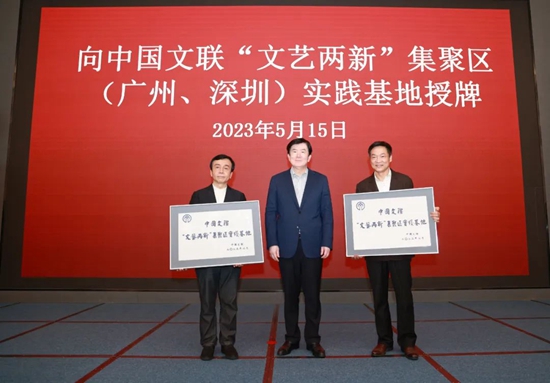 中国文联党组书记、副主席李屹为中国文联“文艺两新”集聚区广州基地、深圳基地授牌