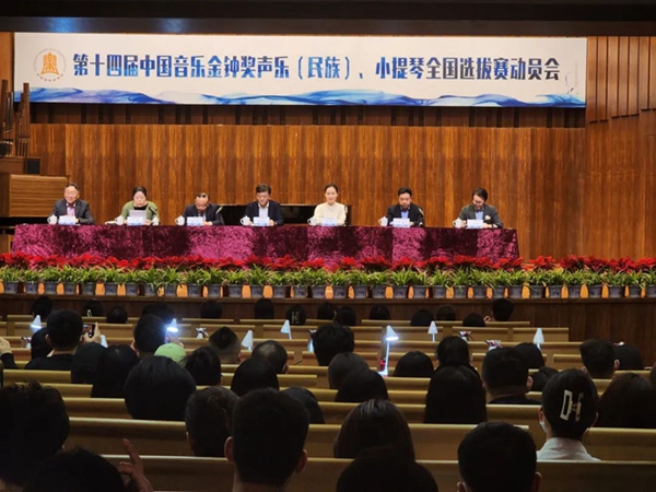 5月29日晚举行的第十四届中国音乐金钟奖声乐(民族)、小提琴全国选拔赛动员会现场。